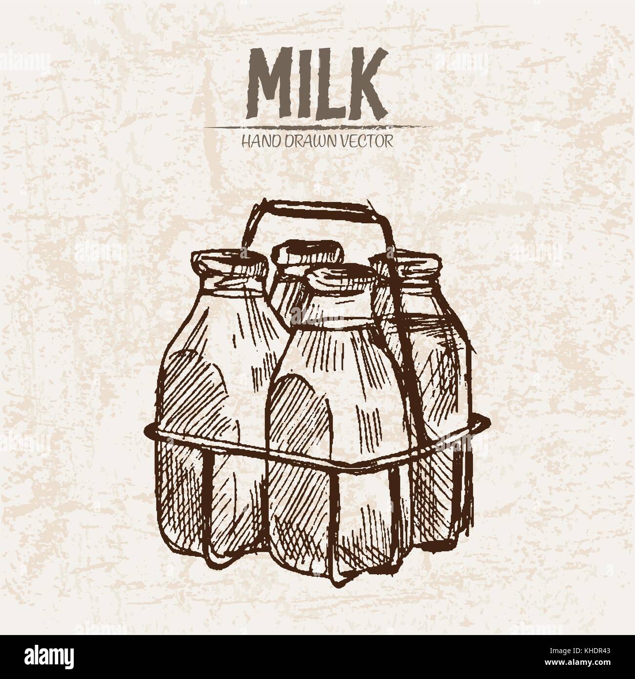 Digital Vector Detailed Line Art Milk In Glass Bottles With