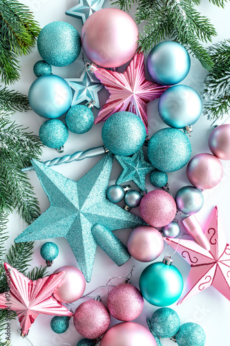 Decorate The Christmas Tree Pink And Blue Stars And Balls